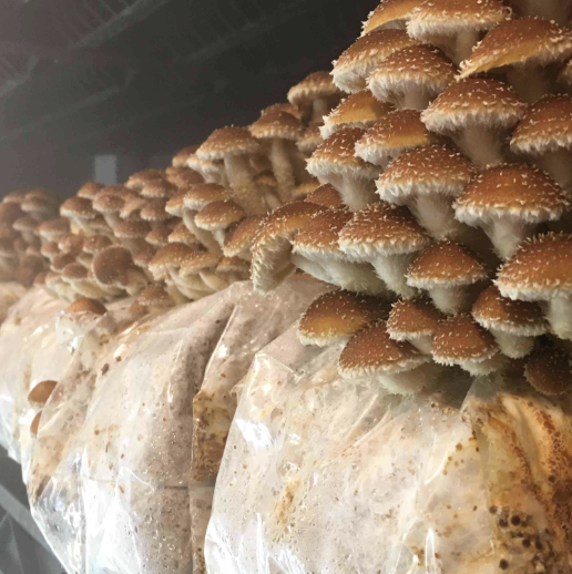Monitor your chestnut blocks closely as the mushrooms are developing and harvest when the edges of the caps are still curled down (Figure 5). Overly mature mushrooms do not store as long. To harvest, simply grab the cluster of mushrooms, twist, and pull them off the block. Mushrooms need to be stored in the refrigerator until consumed or sold. Be cautious not to stack them too deep. A semi-breathable container is ideal for reducing condensation and excessive wetness that will reduce the shelf life of your bounty.